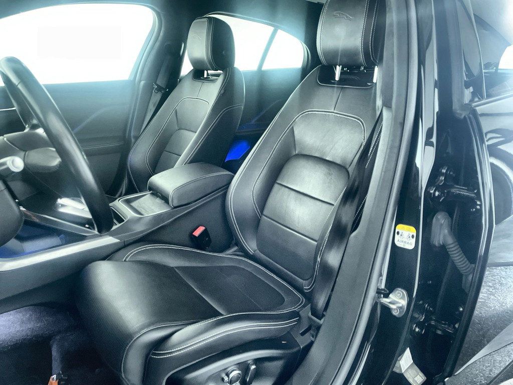 Stijlvol design en topprestaties zonder emissies. Deze Jaguar I-PACE verbindt elegante lijnen met krachtige elektrische aandrijving zonder schadelijke uitstoot. U zult verrast zijn door de power van de elektromotor. En stil! De krachtige motor geeft deze Jaguar uitstekende prestaties. En wat heeft deze auto nog meer in petto? Om te beginnen zien we het lederen interieur, dat een sfeer van luxe meebrengt. Maar als u gaat voor gemak, wordt u ook niet teleurgesteld. Kijk eens naar die elektrisch bedienbare achterklep! Zit u goed? De stoelen zijn eenvoudig instelbaar dankzij de elektrische bediening met geheugen. Hoe koud het buiten ook is, het verwarmbare stuurwiel en de verwarmbare voorstoelen brengen uw handen, vingers en lichaam snel weer op temperatuur. Het interieur baadt in een zee van licht door het glazen panoramadak. Daglicht bij nacht? De koplampen met matrix LED-verlichting zorgen ervoor. Tot de voorzieningen van deze auto behoren 20 inch lichtmetalen velgen, adaptief dempingsysteem, adaptief onderstel, donker getint glas achter, LED-achterlichten en verwarmde ruitensproeiers.