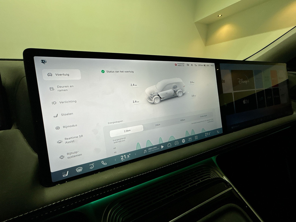Met deze XPENG G9 maakt u een krachtig statement: elektrisch rijden is niet alleen beter voor het milieu, het is ook gewoon leuk. De elektromotor is stil en schoon. En met een verrassend grote actieradius! De krachtige motor geeft deze XPENG uitstekende prestaties. Maximaal comfort en stijl krijgt u dankzij het lederen interieur. De verwarmbare voorstoelen inclusief massagefunctie benadrukken nog maar eens dat we hier te maken hebben met een regelrechte verwenauto. Zit u goed? De stoelen zijn eenvoudig instelbaar dankzij de elektrische bediening met geheugen. Licht en lucht komen onbelemmerd binnen als het elektrisch bediende glazen panoramadak met één druk op de knop wordt geopend. De bagageruimte is toegankelijk via een comfortverhogende elektrische achterklep. Ook achterin is iedereen snel op temperatuur door de verwarmde achterbank. Bij de rijke uitrusting horen ook 19 inch lichtmetalen velgen, LED koplampen, donker getint glas achter, in delen neerklapbare achterbank en LED-achterlichten.