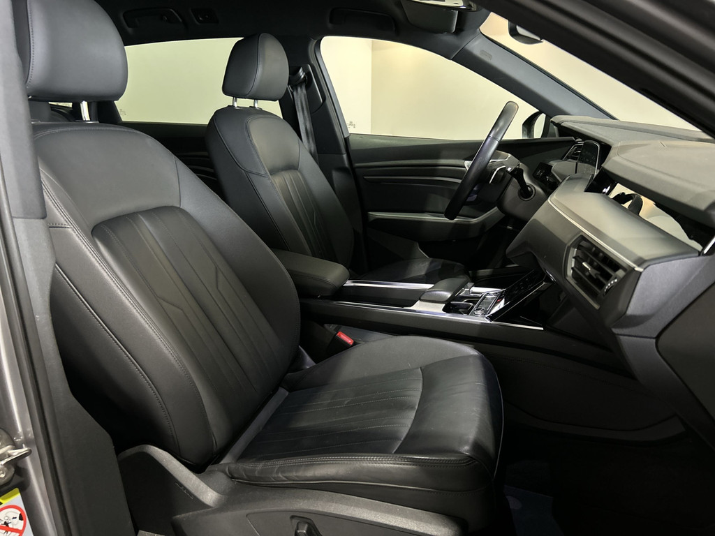 Efficiënte techniek en ongekende dynamiek. Het plezier van elektrisch rijden gaat in deze Audi e-tron samen met een spaarzaam stroomverbruik. Het aantal kilometers dat u op een acculading kunt rijden, is ruimschoots genoeg voor de gangbare dagelijkse ritten, en het opladen kan in de meeste gevallen 's nachts gebeuren. De krachtige motor geeft deze Audi uitstekende prestaties. Klinkers of asfalt? U merkt het verschil niet door de luchtvering. Elke rit in deze Audi e-tron heeft een tikje meer, dankzij het lederen interieur. Tijdens gure dagen is het prettig zitten in de verwarmbare voorstoelen. Met een druk op de knop gaat de elektrische achterklep open. De uitmonstering van deze auto wordt gecompleteerd door onder meer 20 inch lichtmetalen velgen, LED koplampen, adaptief dempingsysteem, warmtewerend glas, in delen neerklapbare achterbank en LED-achterlichten.